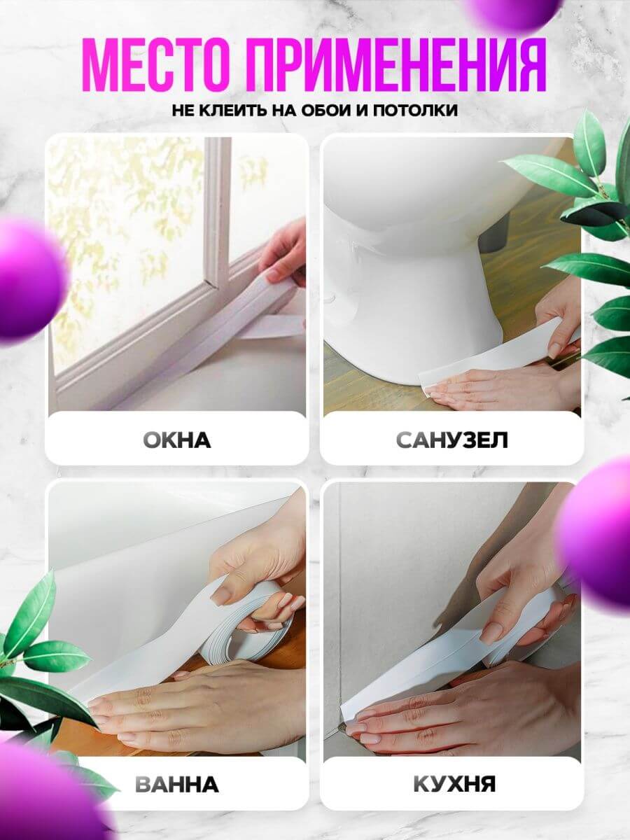 Легкая установка делает процесс максимально удобным для каждого пользователя. Отлично подходит для создания барьеров между столешницами и кухонными фартуками, а также для герметизации стыков ванн, раковин и других поверхностей. С водостойкими и устойчивыми к плесени свойствами, бордюрная лента не только защищает ваш дом, но и придает ему стильный и завершенный вид.