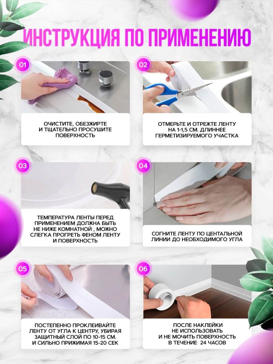 Великолепная лента, я в восторге, устранила протекание на стыке стены и ванне. В работе с ней нет ничего сложного, просто приклеить - очень понравилась, заказала уже и на кухню! Рекомендую!